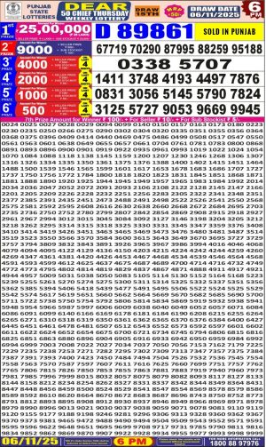 Dear Monthly Chart Punjab State Dear 50 6PM Lottery Result 06.11.25