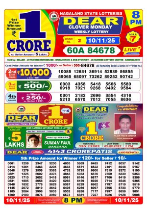 Nagaland State Lottery Result Today 8PM 10.11.25