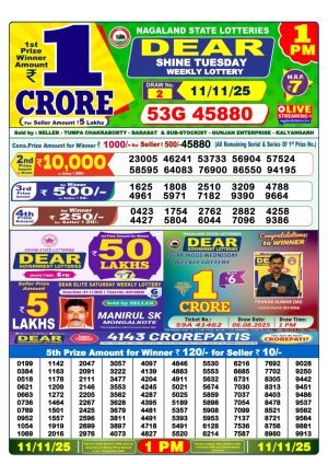 Nagaland State Lottery Result Today 1PM 11.11.25