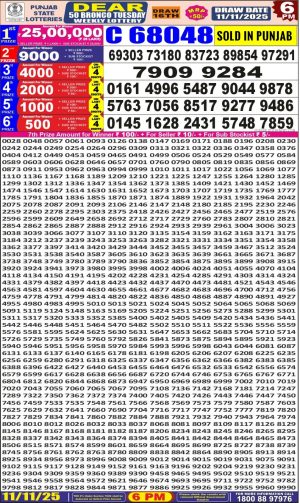 Dear Monthly Chart Punjab State Dear 50 6PM Lottery Result 11.11.25