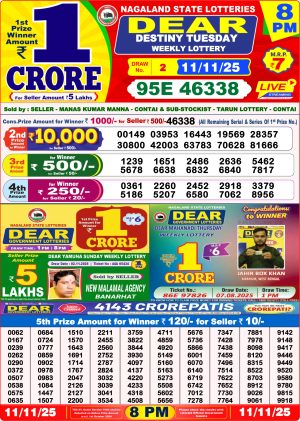Nagaland State Lottery Result Today 8PM 11.11.25