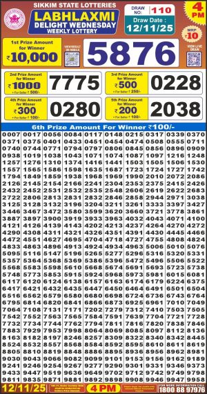 Dear Lottery Monthly Chart 6PM Result Sikkim State 12.11.25