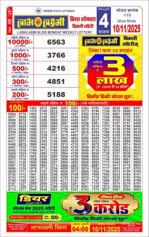 Dear Lottery Monthly Chart Labh Laxmi Lottery 4PM Result 10.11.25