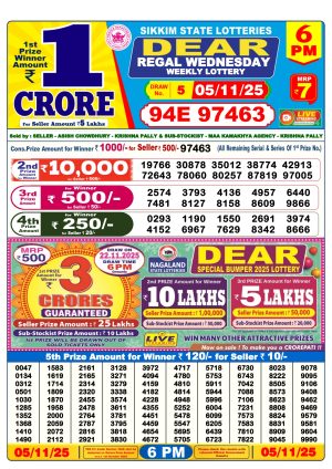 Dear Lottery Monthly Chart 6PM Result Sikkim State 05.11.25
