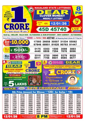 Nagaland State Lottery Result Today 8PM 12.01.26