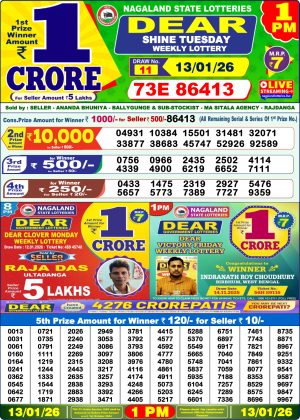 Nagaland State Lottery Result Today 1PM 13.01.26