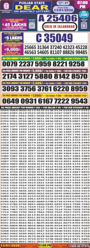 Dear Monthly Chart Punjab State Dear 100 Monthly 7PM Lottery Result 13.01.26