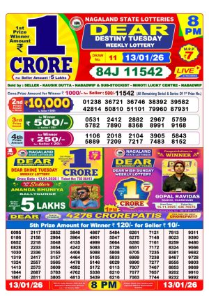 Nagaland State Lottery Result Today 8PM 13.01.26
