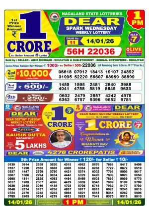 Nagaland State Lottery Result Today 1PM 14.01.26