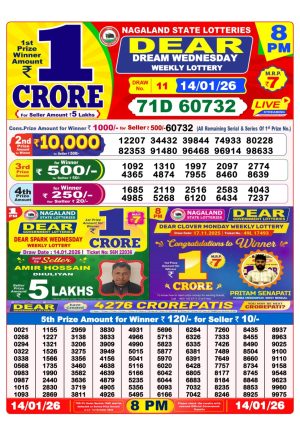 Nagaland State Lottery Result Today 8PM 14.01.26
