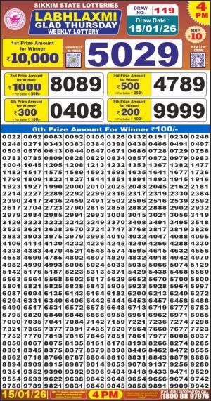 Dear Lottery Monthly Chart Labh Laxmi Lottery 4PM Result 15.01.26