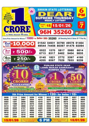 Dear Lottery Monthly Chart 6PM Result Sikkim State 15.01.26