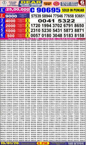 Dear Monthly Chart Punjab State Dear 50 6PM Lottery Result 15.01.26