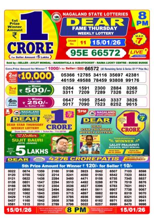 Nagaland State Lottery Result Today 8PM 15.01.26