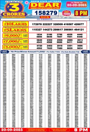 Dear Lottery Monthly Chart 6PM Result Sikkim State 03.11.25