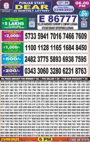 Punjab State Dear 20 Monthly Lottery Result 23.09.25 Outcome
