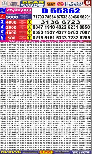 Dear Monthly Chart Punjab State Dear 50 6PM Lottery Result 23.01.26