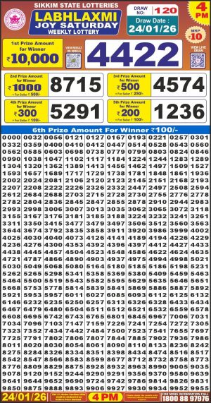 Dear Lottery Monthly Chart 6PM Result Sikkim State 24.01.26
