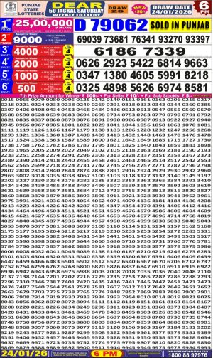 Dear Monthly Chart Punjab State Dear 50 6PM Lottery Result 24.01.26