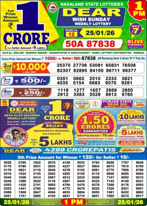 Nagaland State Lottery Result Today 1PM 25.01.26