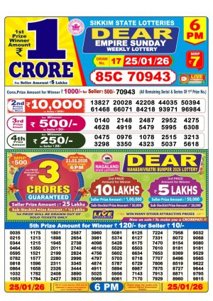 Dear Lottery Monthly Chart 6PM Result Sikkim State 25.01.26