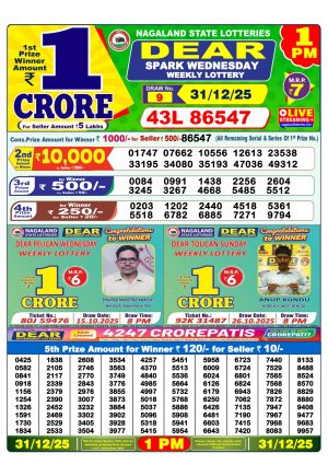 Nagaland State Lottery Result Today 1PM 31.12.25