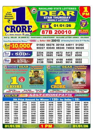 Nagaland State Lottery Result Today 1PM 01.01.26