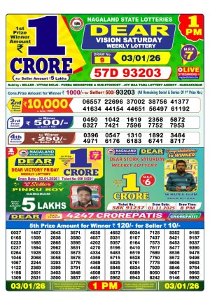 Nagaland State Lottery Result Today 1PM 03.01.26