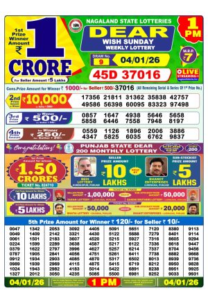 Nagaland State Lottery Result Today 1PM 04.01.26