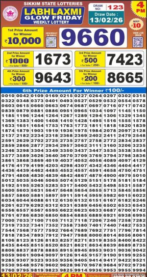 2026-03-02 Nagaland Lottery Monthly Chart 8PM Result Today 02.03.26 2026-03-02 Dear Monthly Chart Punjab State Dear 50 5PM Lottery Result 02.03.26 2026-03-02 Dear Lottery Chart 6PM Result Sikkim State 02.03.26 2026-03-02 Dear Monthly Chart Labh Laxmi Lottery 4PM Result 02.03.26 2026-03-02 Nagaland Monthly Chart 1PM Result Today 02.03.26 2026-03-01 Nagaland Lottery Monthly Chart 8PM Result Today 01.03.26 2026-03-01 Dear Monthly Chart Punjab State Dear 50 5PM Lottery Result 01.03.26 2026-03-01 Dear Lottery Chart 6PM Result Sikkim State 01.03.26 2026-03-01 Dear Monthly Chart Labh Laxmi Lottery 4PM Result 01.03.26