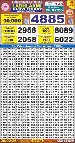Dear Monthly Chart Labh Laxmi Lottery 4PM Result 20.02.26