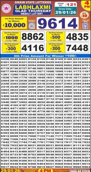Dear Lottery Monthly Chart Labh Laxmi Lottery 4PM Result 25.01.26