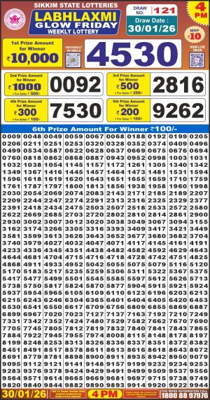 Dear Monthly Chart Labh Laxmi Lottery 4PM Result 30.01.26