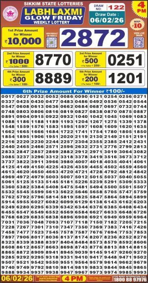 Dear Monthly Chart Labh Laxmi Lottery 4PM Result 06.02.26