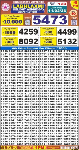 Dear Monthly Chart Labh Laxmi Lottery 4PM Result 11.02.26