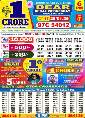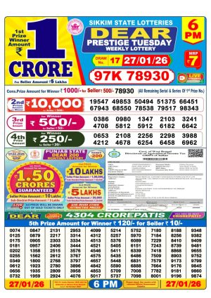 Dear Lottery Chart 6PM Result Sikkim State 27.01.26