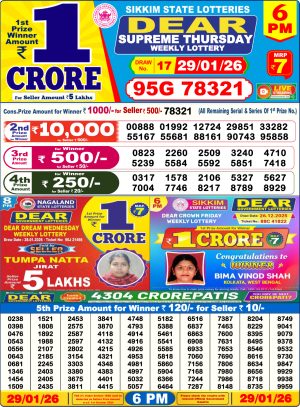 Dear Lottery Chart 6PM Result Sikkim State 29.01.26