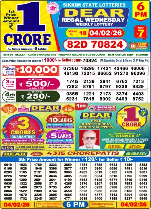 Dear Lottery Chart 6PM Result Sikkim State 04.02.26