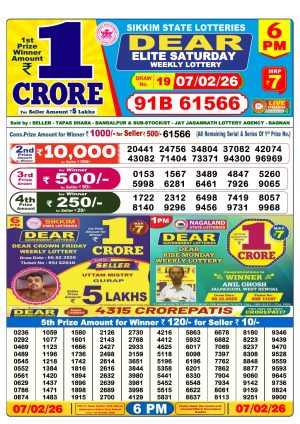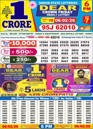 Dear Lottery Chart 6PM Result Sikkim State 07.02.26