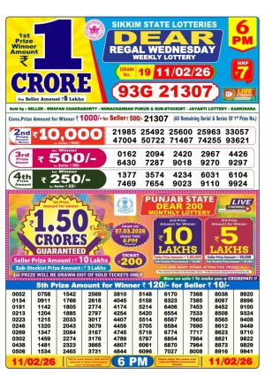 Dear Lottery Chart 6PM Result Sikkim State 11.02.26