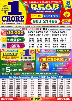 Nagaland Lottery Monthly Chart 8PM Result Today 28.01.26