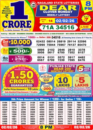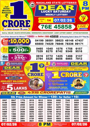 Nagaland Lottery Monthly Chart 8PM Result Today 07.02.26