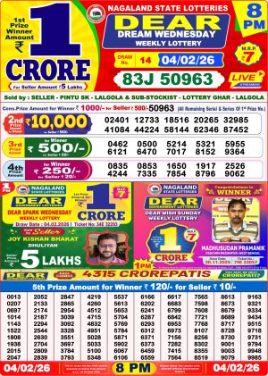 Nagaland Lottery Monthly Chart 8PM Result Today 04.02.26