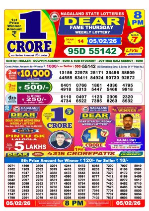 Nagaland Lottery Monthly Chart 8PM Result Today 05.02.26