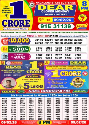 Nagaland Lottery Monthly Chart 8PM Result Today 09.02.26