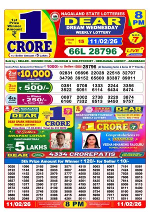 Nagaland Lottery Monthly Chart 8PM Result Today 11.02.26