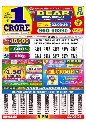 Nagaland Lottery Monthly Chart 8PM Result Today 20.03.26