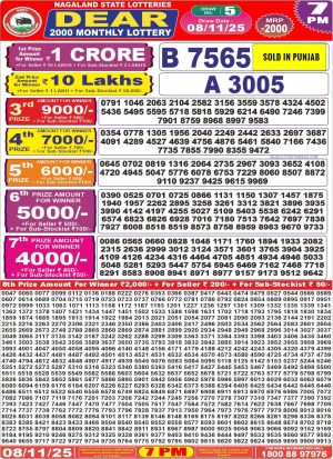 Nagaland State Dear 2000 Monthly Lottery 7pm Result 08.11.25