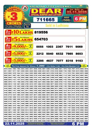Dear Monthly Chart Dear Special Bumper Lottery 6pm Result 22.11.25