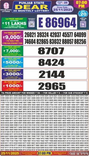 Dear Monthly Chart Punjab State Dear 20 7pm Monthly Lottery Result 25.11.25